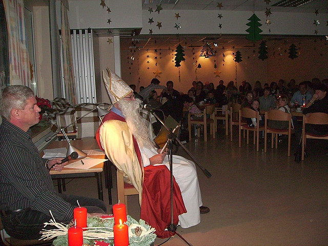 Der Nikolaus unterhält sich mit den kleinen Gästen