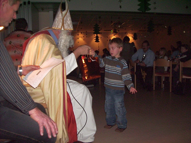 Der Nikolaus überreicht jedem Kind eine Tüte.