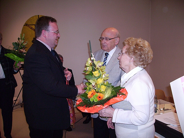 Ehrung des Ehepaares Sauer (Sozialreferenten) durch Bezirkssekretär Martin Mohr