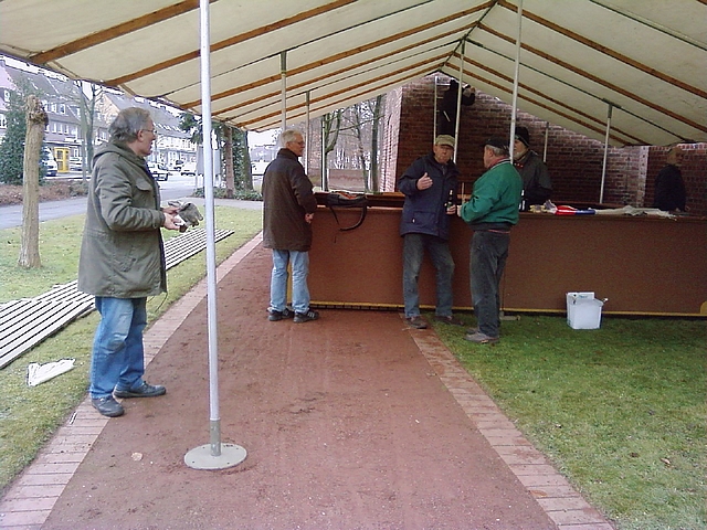 Aufbau der Verkaufstände an der Pauluskirche ein Tag vor dem Umzug.
