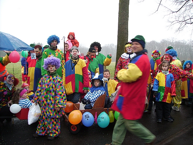 Aufstellung unserer Zuggruppe (47 Leute - Klein und Groß) in der Allee am Wasserschloss