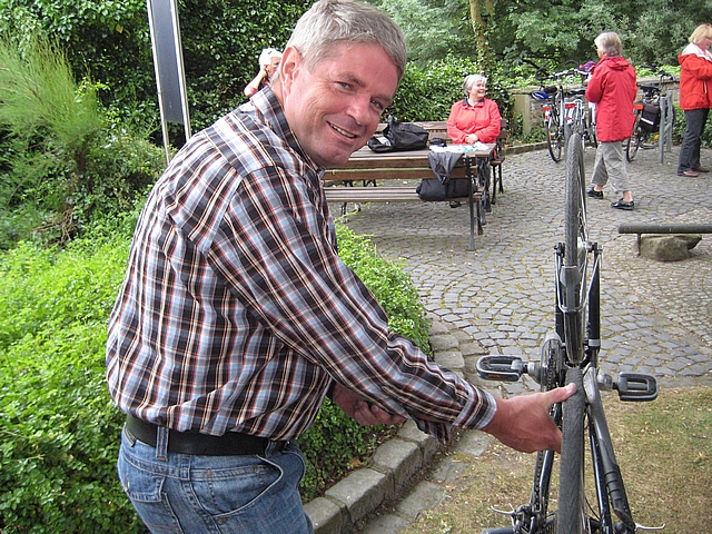 Freund Jürgen Händler hat in Krudenburg sein Rad wieder in Ordnung gebracht