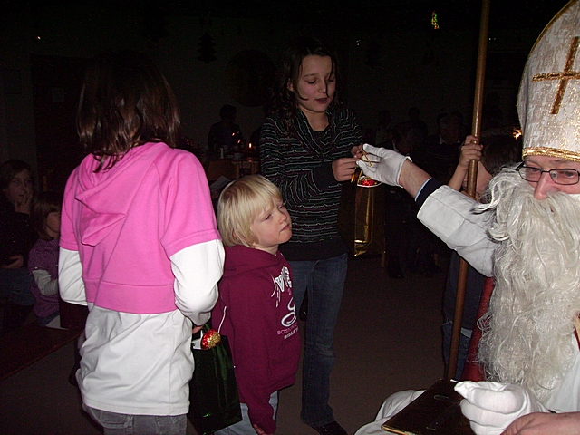 Nikolaus verteilt Nikolaustüten an die Kinder