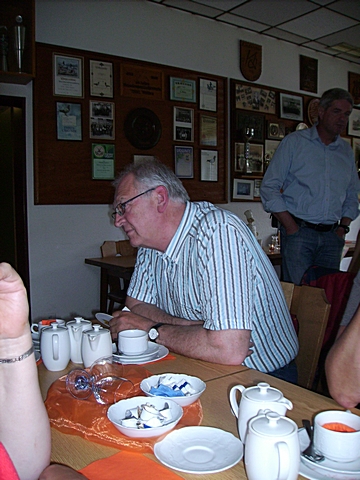 Pfarrer Möller in der Gaststätte der Freizeitanlage in Möllen