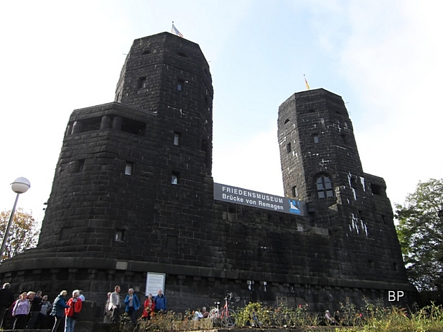 Friedensmuseum "Die Brücke von Remagen" - vor dem Museum das sich in den Brückenpfeilern befindet